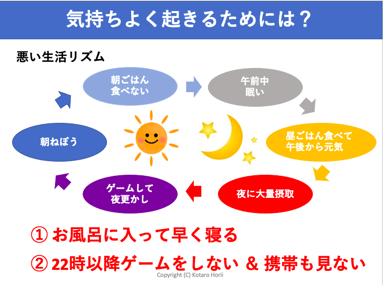 23:30 就寝 (どんなに遅くてもこの時間までには寝てほしい)