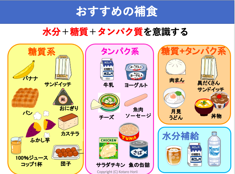 *基本的には、エネルギー源を確保できる糖質を中心とした補食がおすすめです。